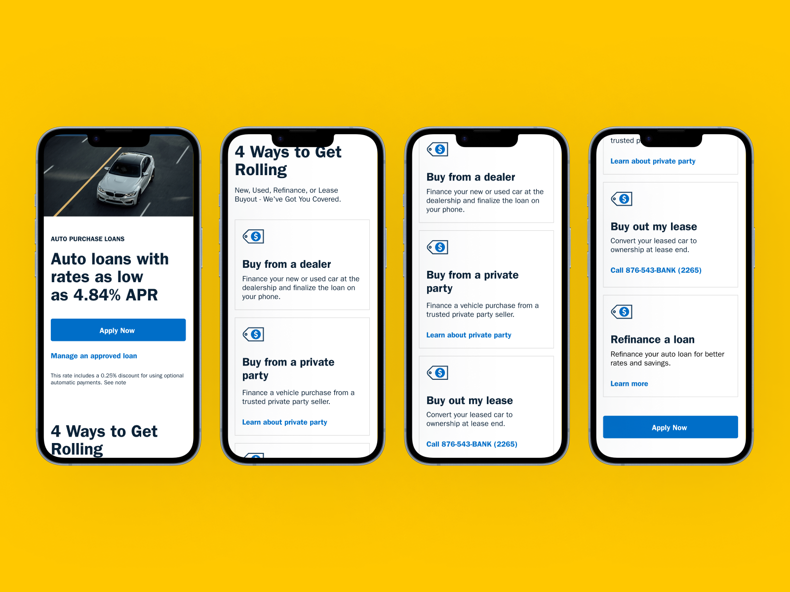 As part of a broader effort to strengthen trust and clarity in financial experiences, I partnered across business, legal, compliance, content, and development teams to streamline the application journey.