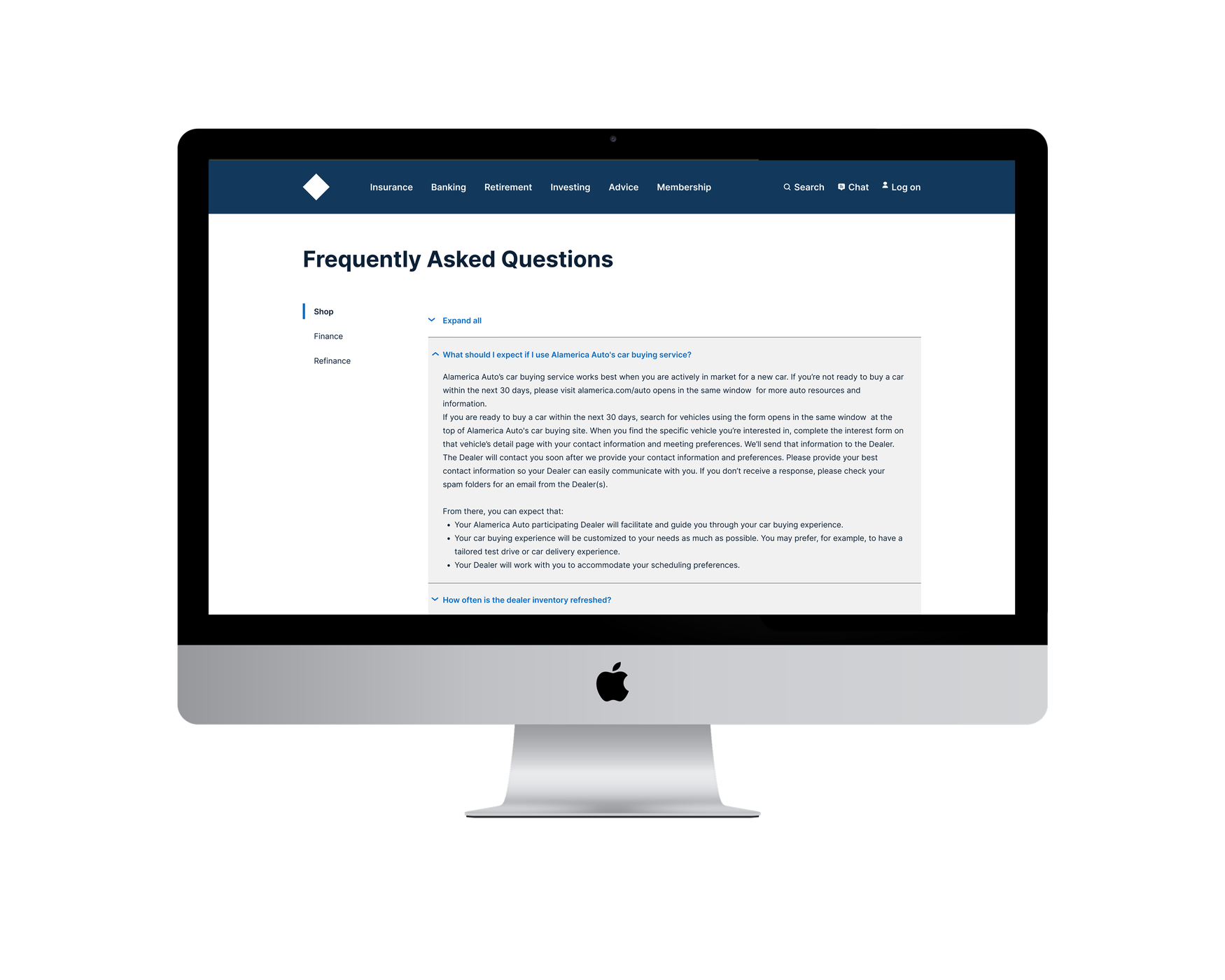 Desktop view of FAQ sectionSolution