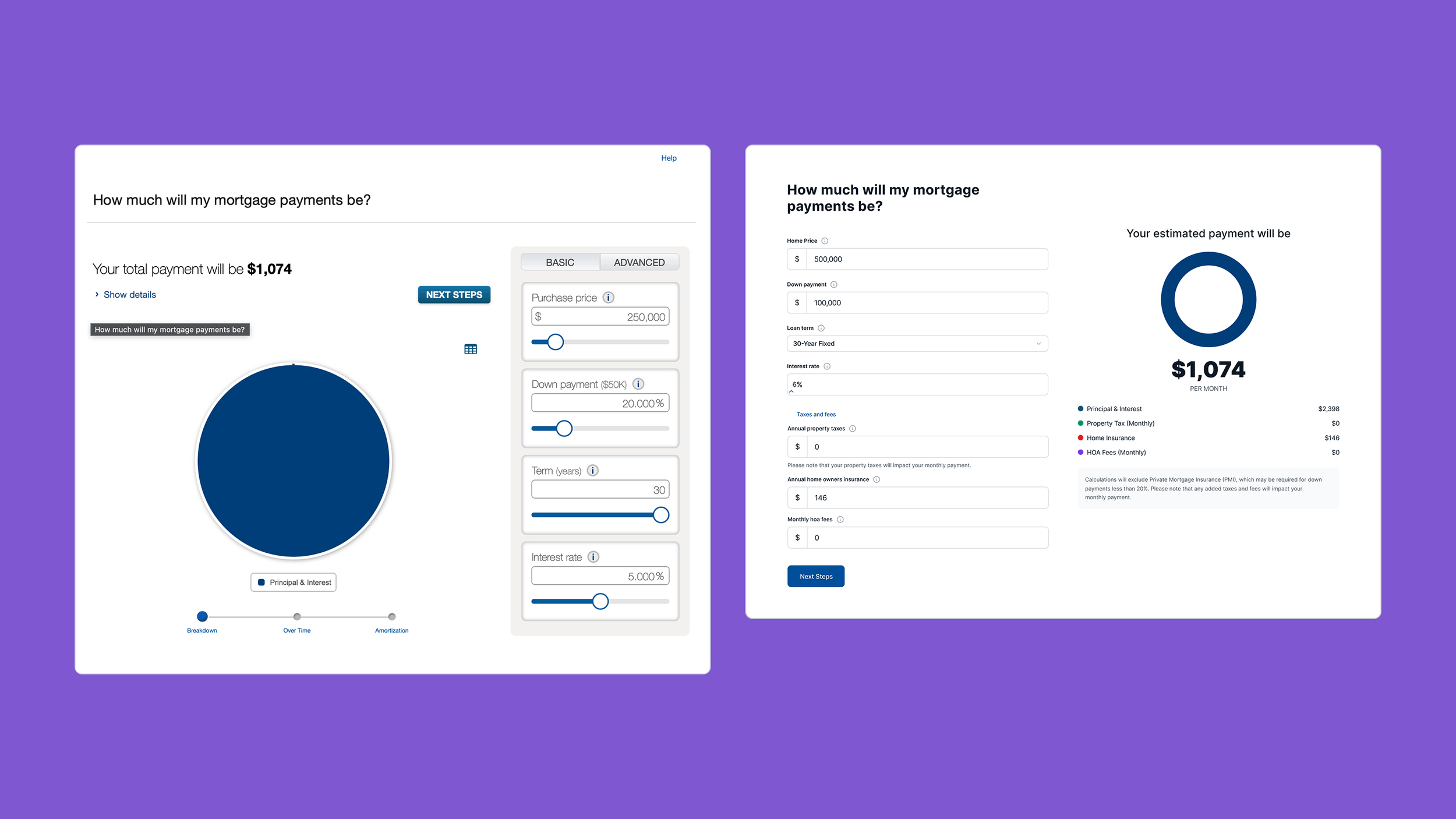 Our mortgage pages relied on third‑party calculators with minimal customization. They didn’t support key mortgage scenarios, didn’t reflect our brand, and created friction for members trying to estimate payments or compare options.